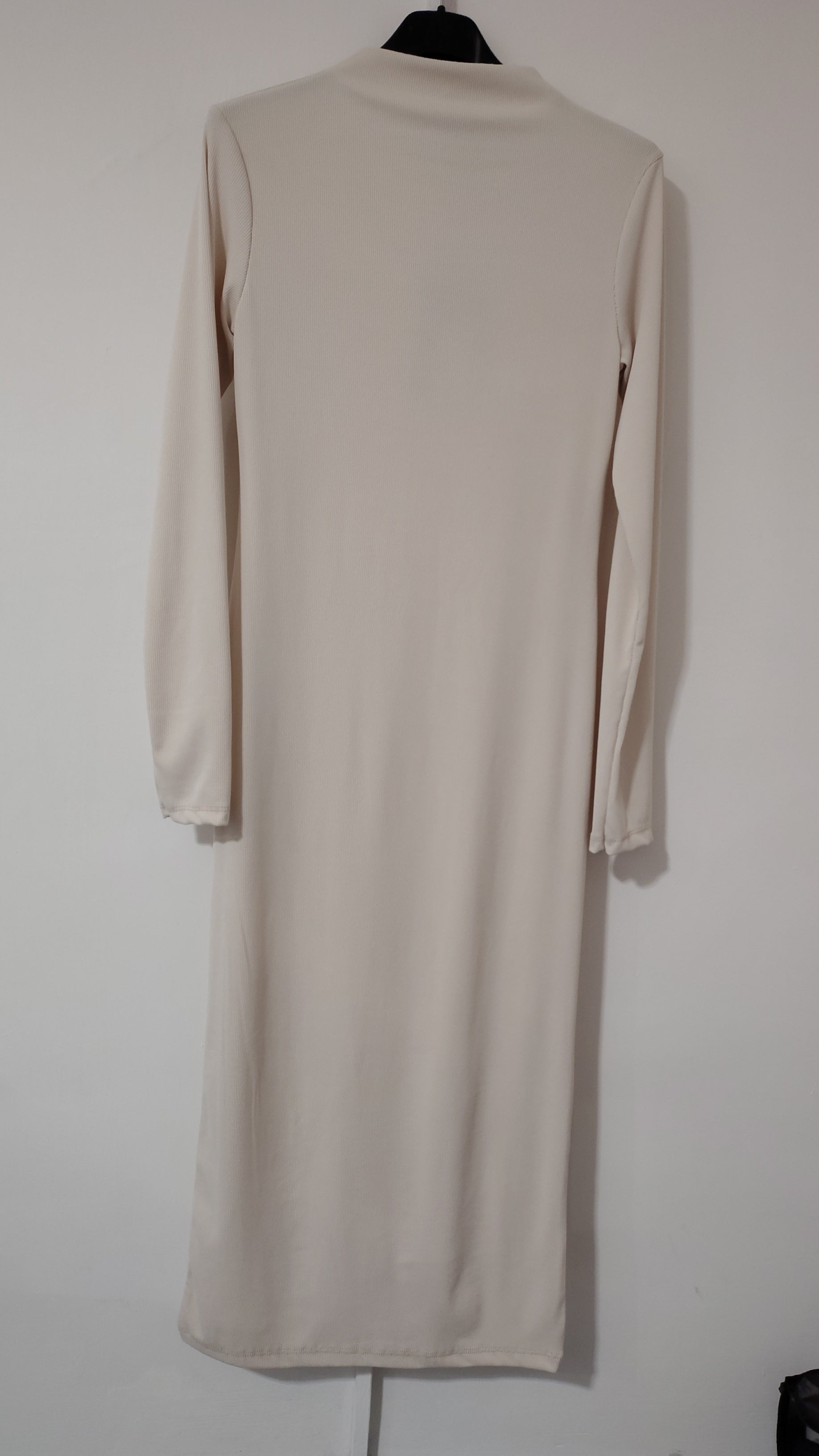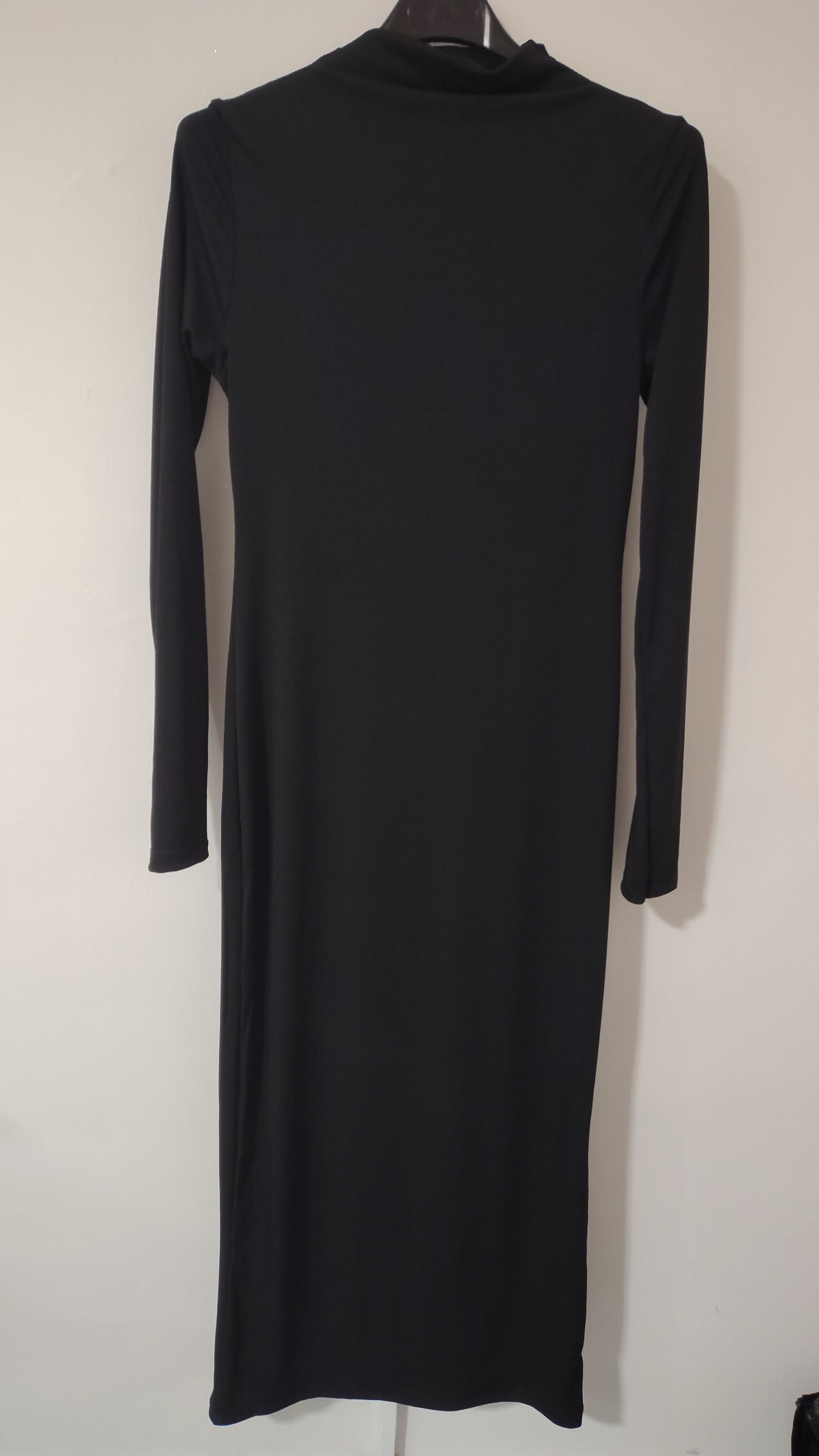 Abito lungo a costine dal design semplice e raffinato. Il tessuto elasticizzato avvolge la figura con naturalezza, valorizzando la silhouette senza rinunciare al comfort. Lo scollo rotondo e la linea minimal lo rendono un capo versatile, perfetto per ogni occasione, dal look quotidiano a quello più elegante.