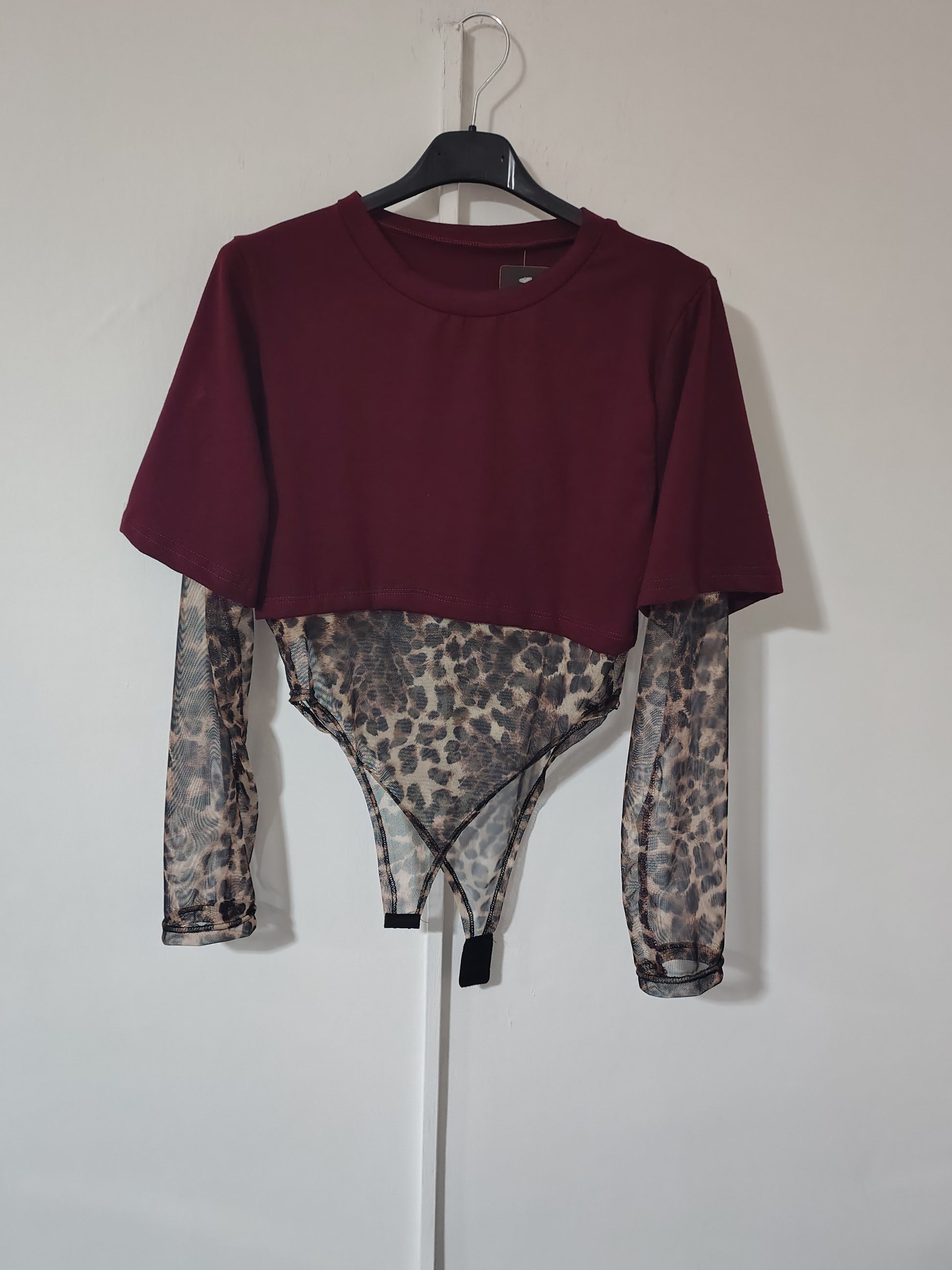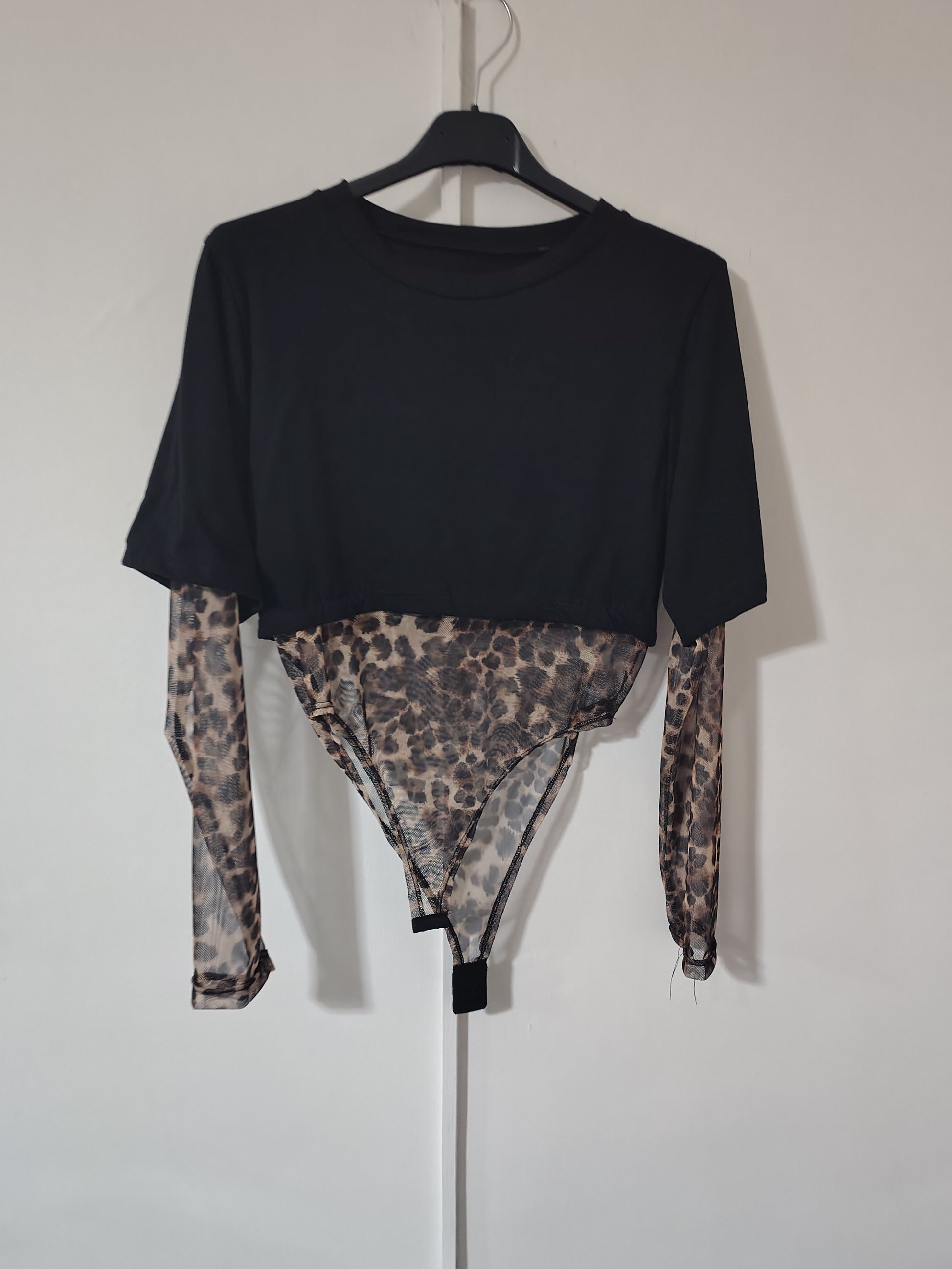 Body molto particolare con dettagli leopardati velati, ha una maglietta ed è molto sgambato.