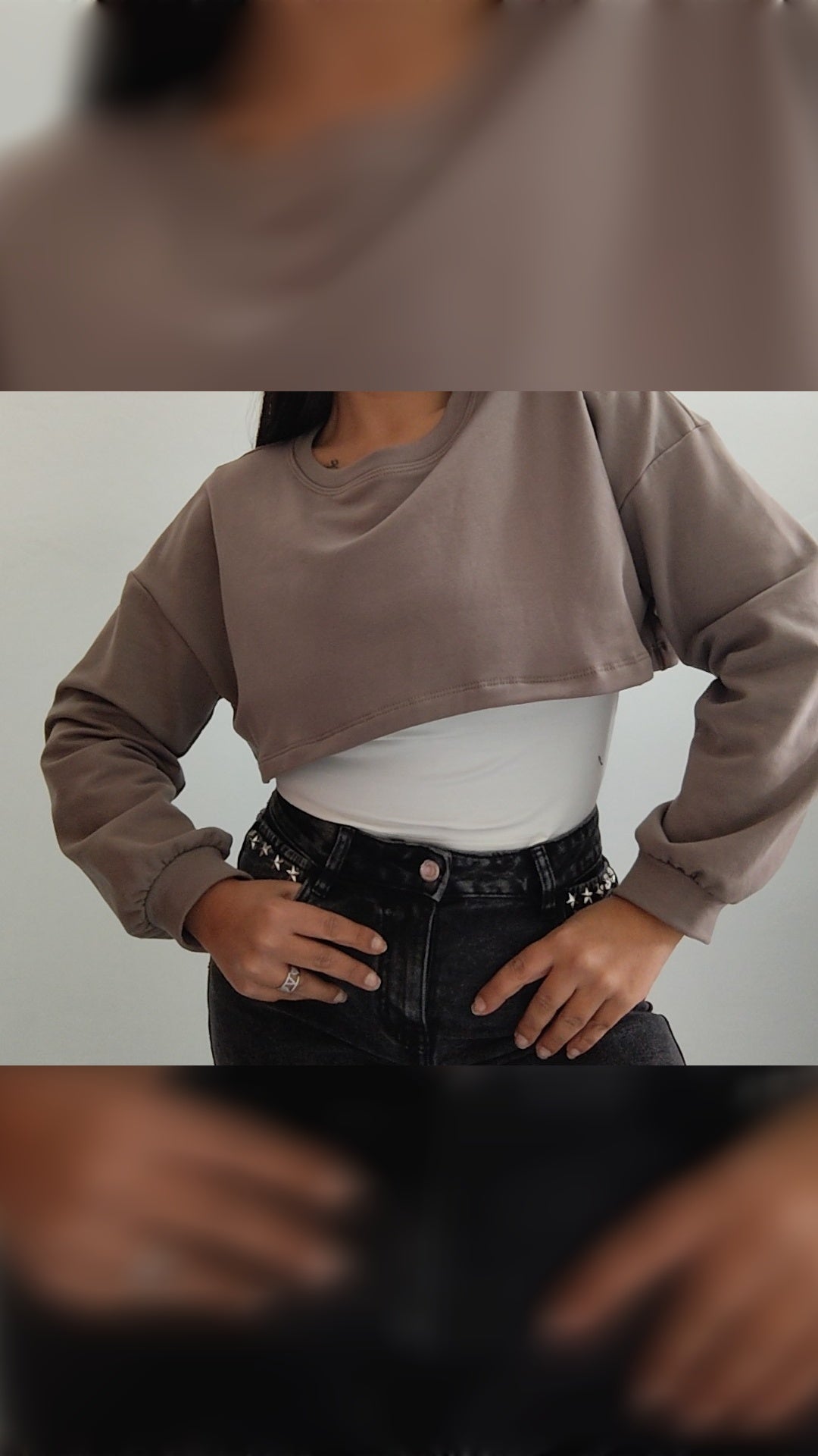 Felpa crop con maglietta integrata, dal design originale e moderno. Perfetta per creare outfit casual o sporty-chic, combinando comfort e stile in un unico capo.