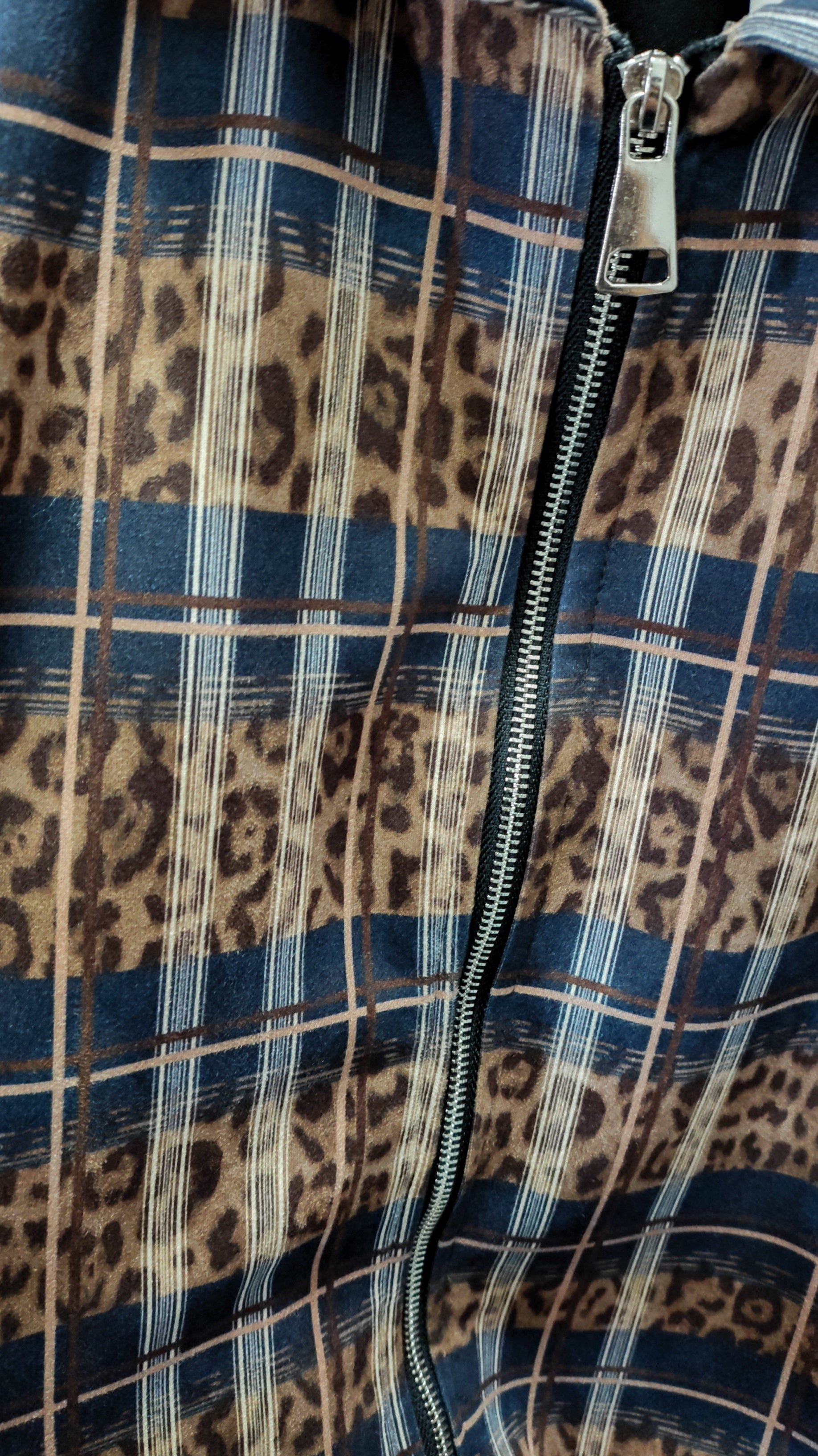 Giacca Bomber con zip centrale, a quadrettoni, con dettagli leopardati che aggiungono un tocco audace al design. La vestibilità molto morbida lo rende comodo e ideale per outfit casual, sporty o street style.