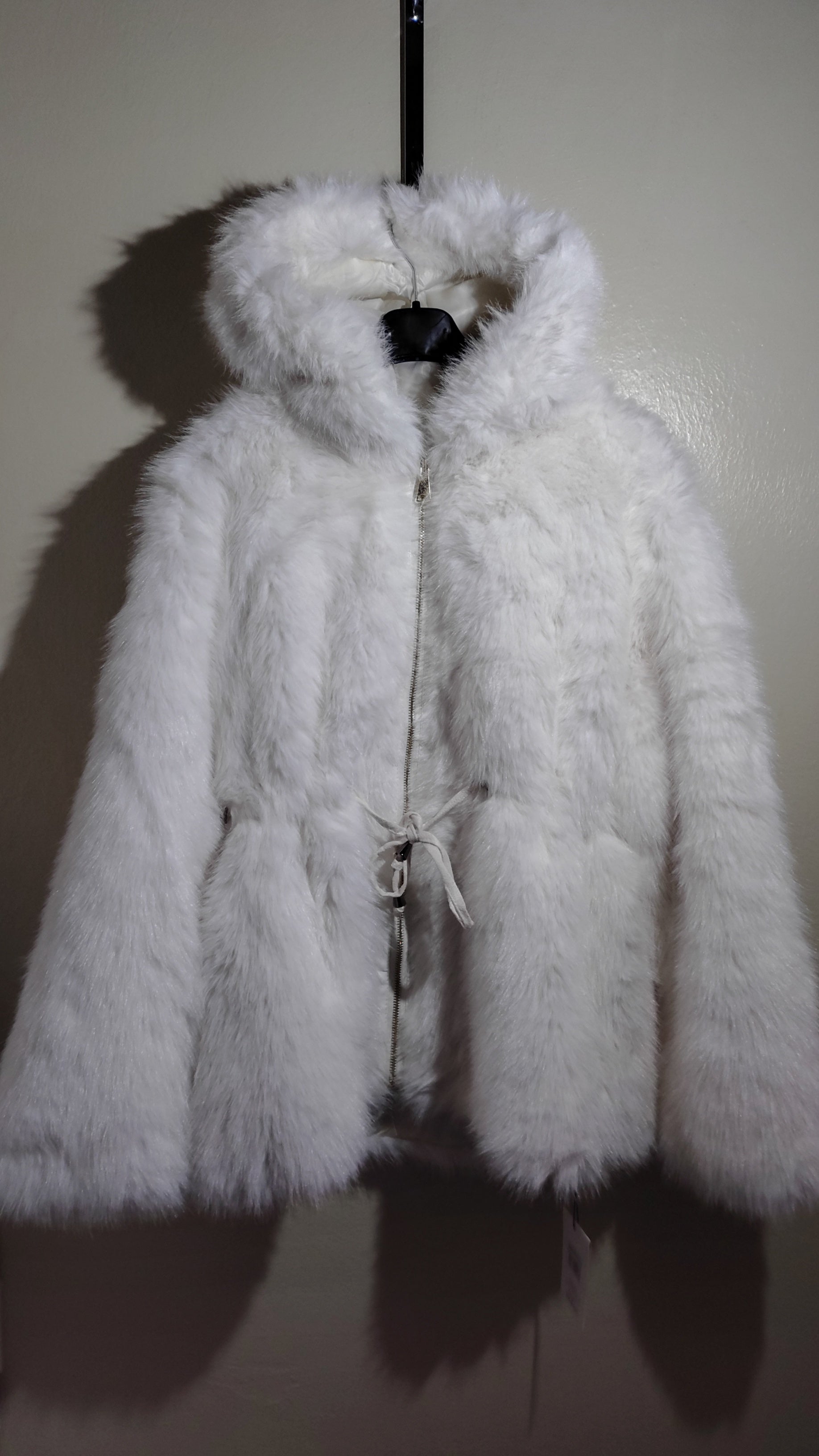 Giubbotto in ecopelliccia morbida con cappuccio e lacci regolabili in vita per definire la silhouette. Caldo e avvolgente, perfetto per look casual o più ricercati. Un capo versatile che unisce comfort, stile e femminilità per affrontare la stagione fredda con eleganza.