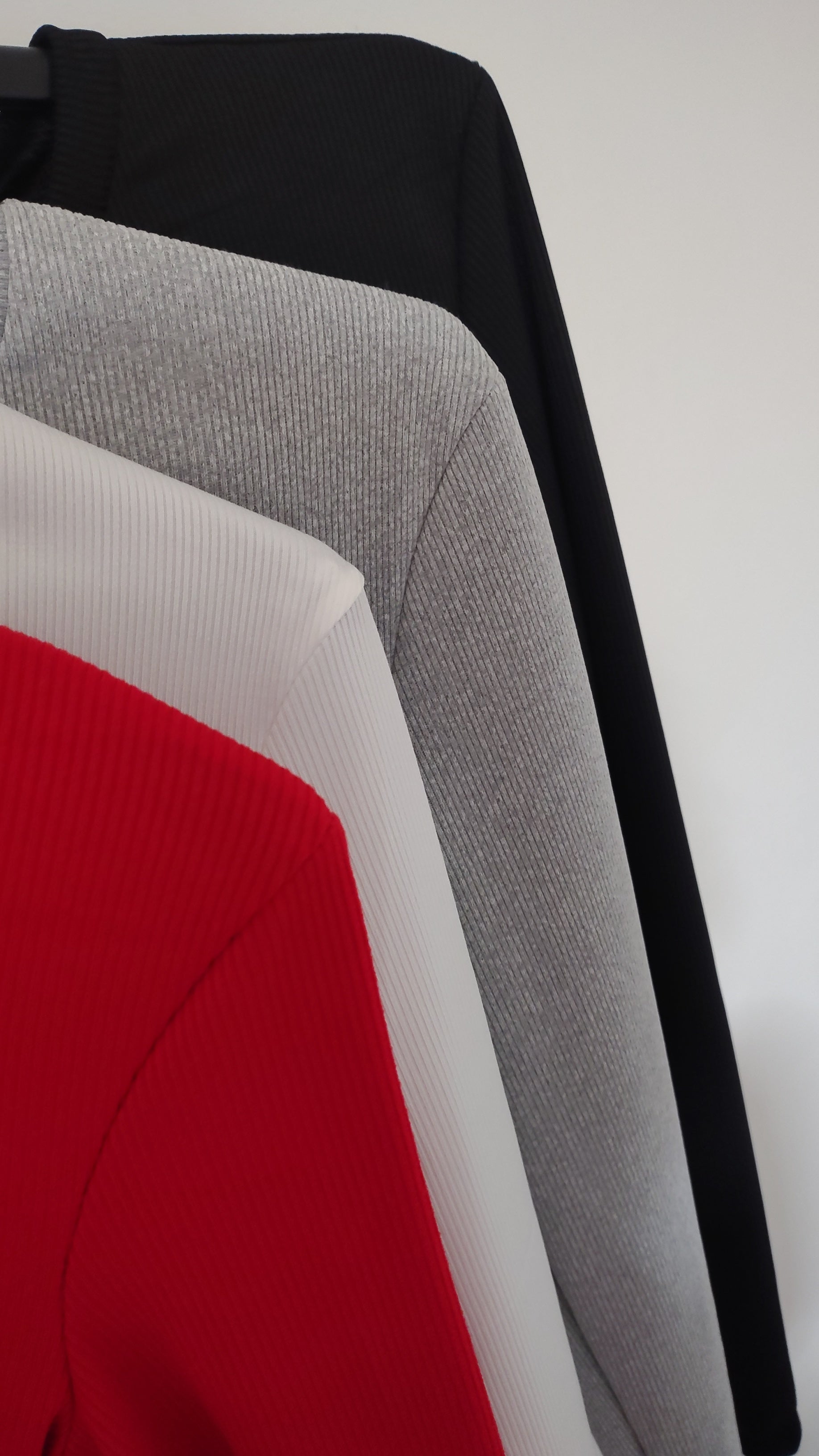 Maglia a costine con taglio super crop, perfetta da abbinare a pantaloni o gonne a vita alta, per outfit casual ma sofisticati. Un capo versatile, essenziale per il guardaroba di ogni stagione.