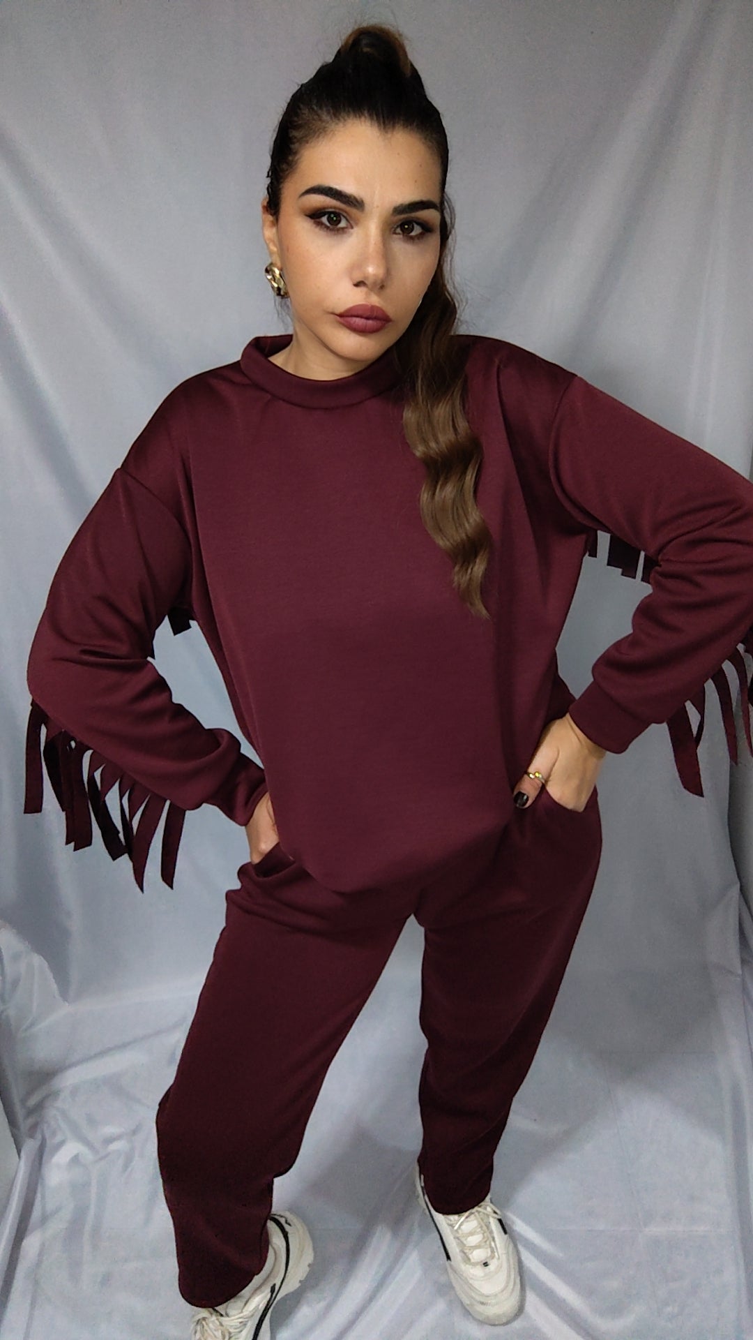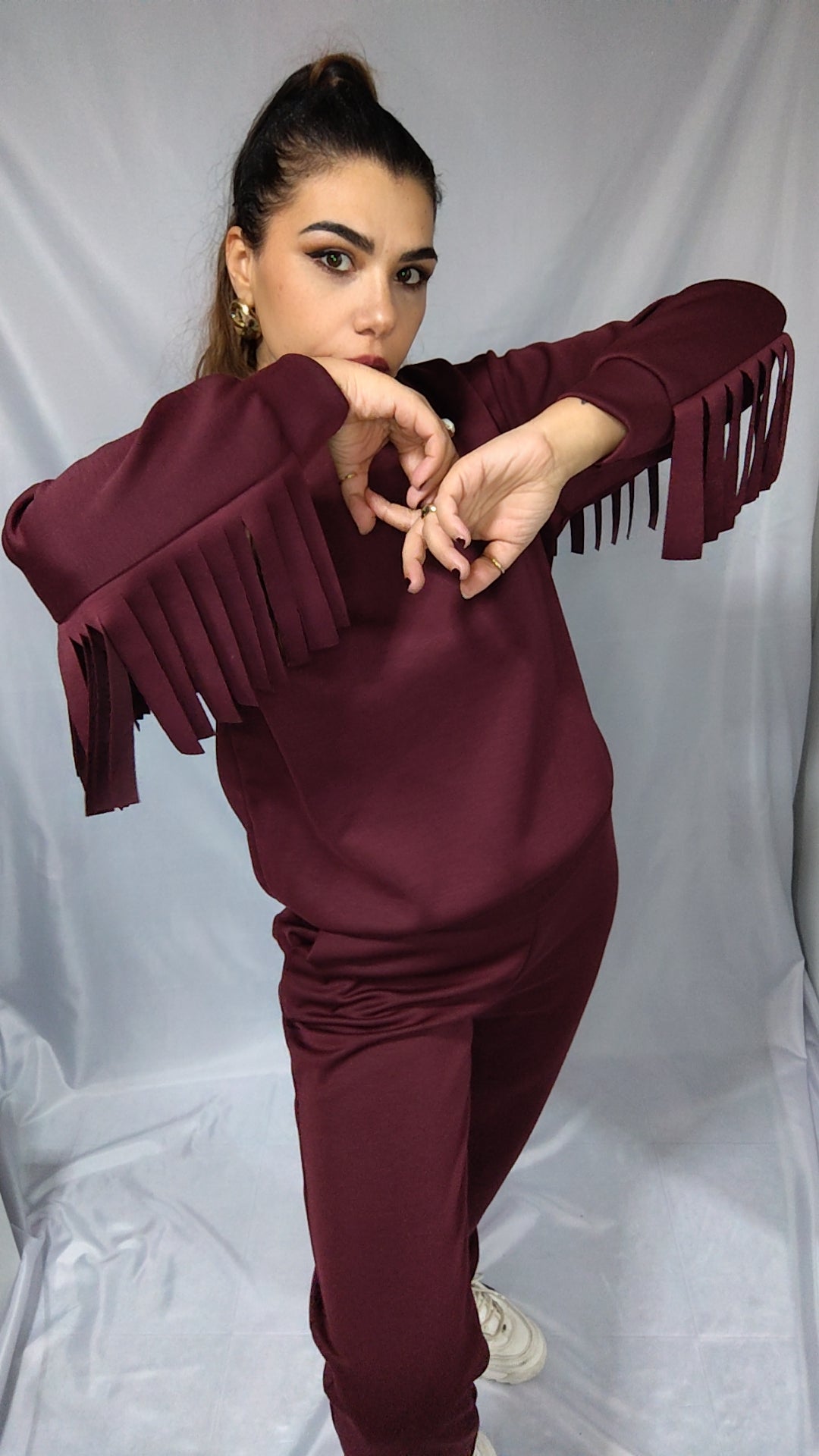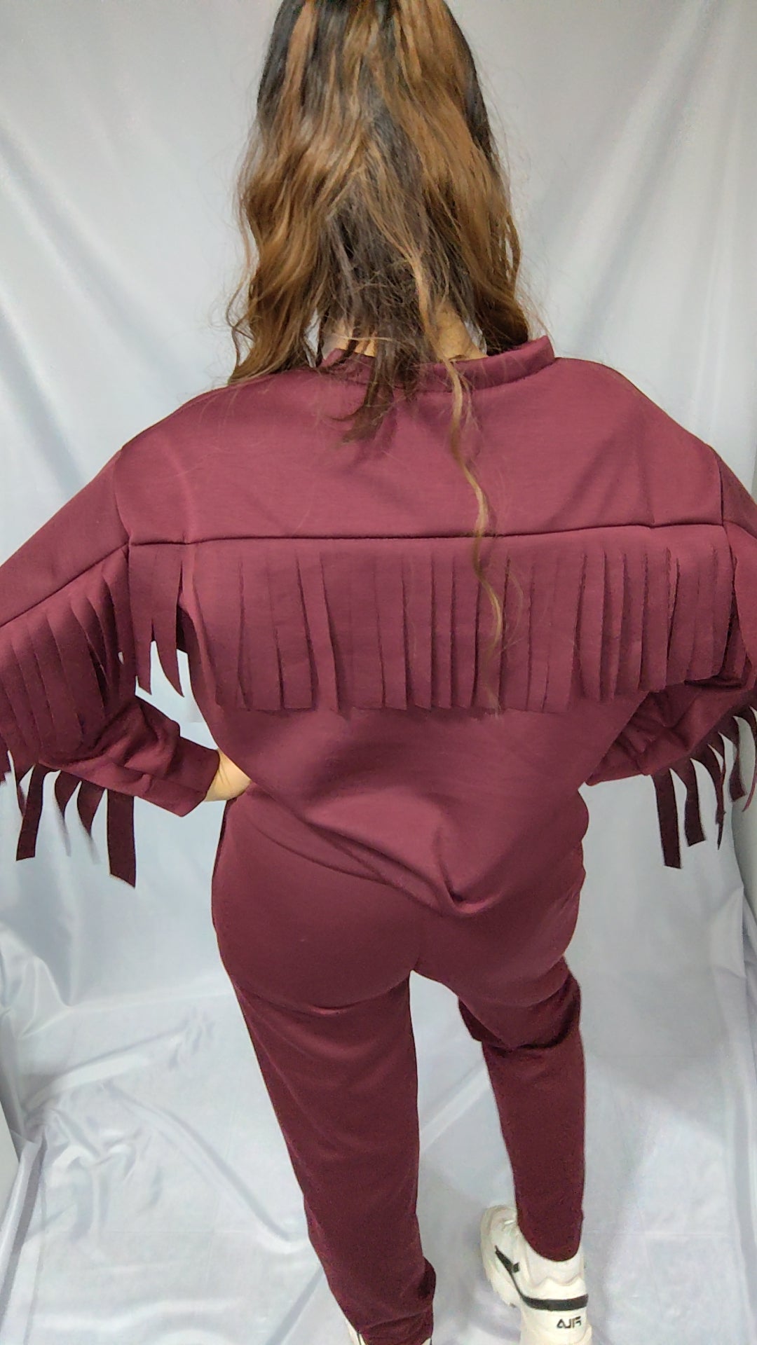 Tuta da donna dallo stile audace e dinamico, arricchita da frange che donano movimento e personalità a ogni passo. Realizzata in tessuto morbido e confortevole, è perfetta per chi ama distinguersi con un look moderno e grintoso, senza rinunciare alla femminilità.